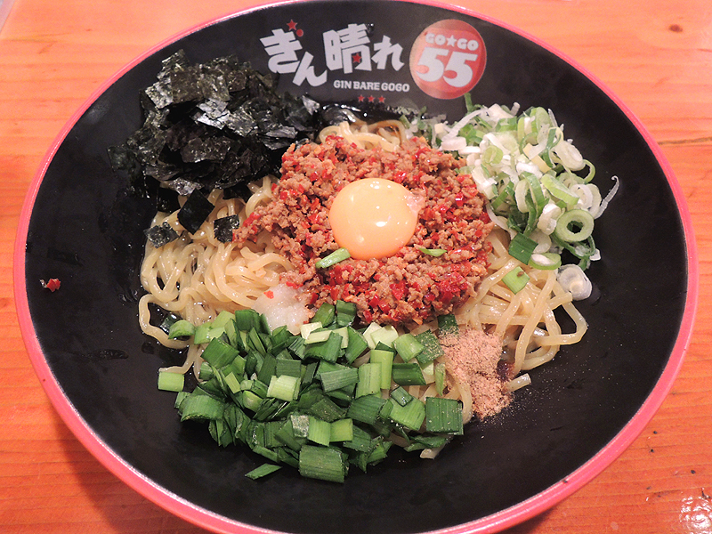 5月7日オープンの話題の店。名古屋ラーメン三英傑のコラボ店ということですが、いつから三英傑になったのでしょう。まぁ、現時点で勢いのある三店主ですから、自ら名乗っても文句は無いのですけど。 メニューは台湾油そばと油そばの二種類にトッピングを追加する、この地方で流行のスタイル。作り手の熟練が要らないので、ここを総本店にして多店舗展開でもするのでしょうか。 5月13日までは並と大盛りが半額という太っ腹。まさか赤にまでして提供しているとは思えないですけど。台湾油そばの並をニンニク少な目でいただきます。 台湾ミンチ・ネギ・ニラ・のり・卵黄に鰹粉。ニンニクはチューブタイプかな。これら具材とやや縮れの中太麺、タレ・油を一気にかき混ぜます。 台湾というだけあって、自分にとってはけっこうな辛さ。で、想像通りの味。混ぜてしまえば気にはなりませんが、具材のクオリティが低いですね。スープオフの780円なら、もうちょっと工夫が欲しいかな、と。 途中で酢を投入。幾分かマイルドになりますね。ミンチが麺に絡みにくいのは分かっていましたが、麺が無くなった時点でミンチがたくさん残ります。追い飯をして最後まで食べさせようという意図なのでしょうけど、追い飯ってあまり好きではないのでパス。ミンチは残さず食べました。 半額でこの内容なら納得。通常価格でこれは無いなー。三英傑なら、780円の幅が有ればもっと上質な出来になるんじゃない? ポイントカードがテーブル上に有ったのでいただきました。経営者は三英傑、お客様は足軽からスタートですか・・・。僕はしばらく足軽のままでいいかな。 (14年5月9日訪店)